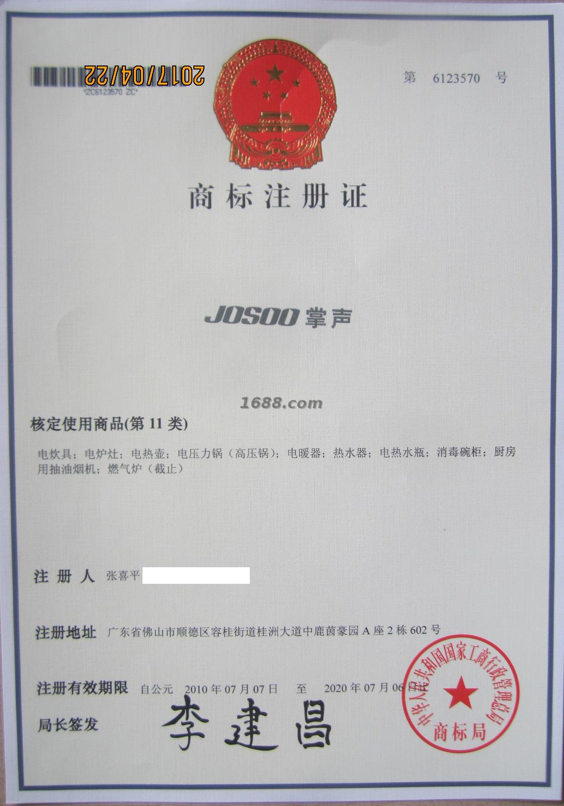 商标注册证(JOSOO)