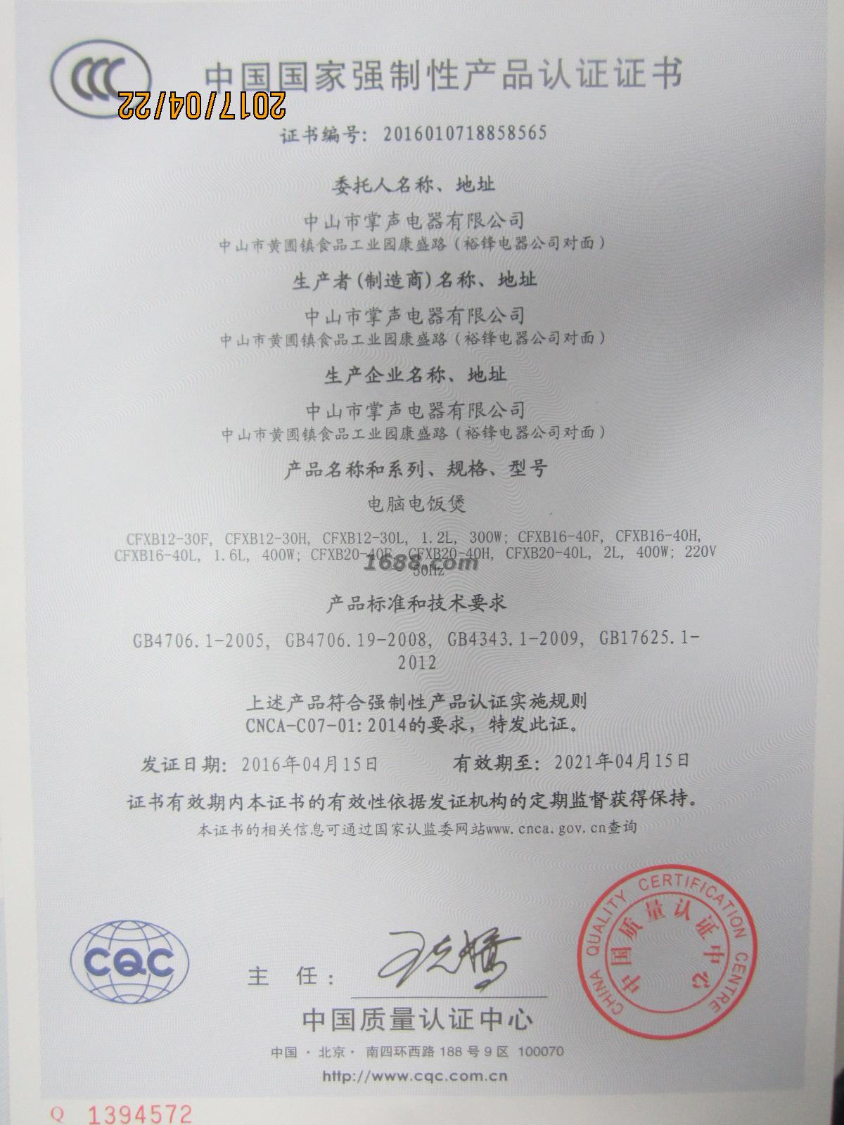 国家强制性产品认证证书2